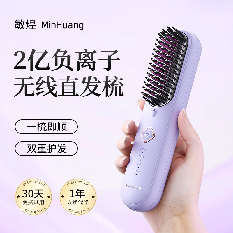 敏煌ワイヤレスストレートヘアコーム、マイナスイオンストレート&カール両用電動コーム、高頭頂部カールアイロン、怠け者向けふわふわコーム