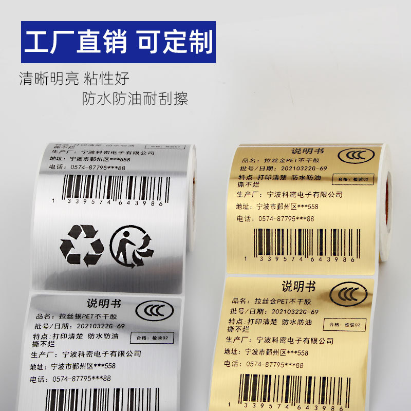 昕ビラ糸金色ラベル紙100*80 70x50 60*40伸線銀色バーコードプリンタステッカー