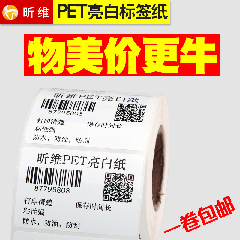 晁維pet亮白ラベル紙60x40*30 70*50 100*80バーコードプリンタ珠光フィルム不乾性糊