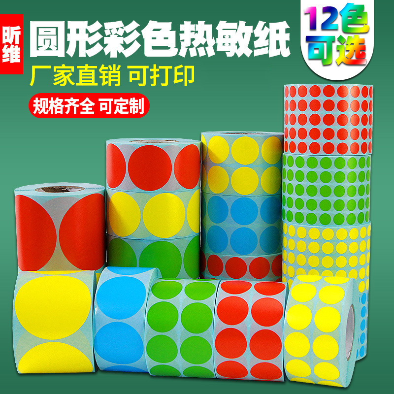 カラフルなラウンド 3 耐性感熱紙 10 20 25 30 35 40 50 バーコード プリンタ粘着ラベル 70
