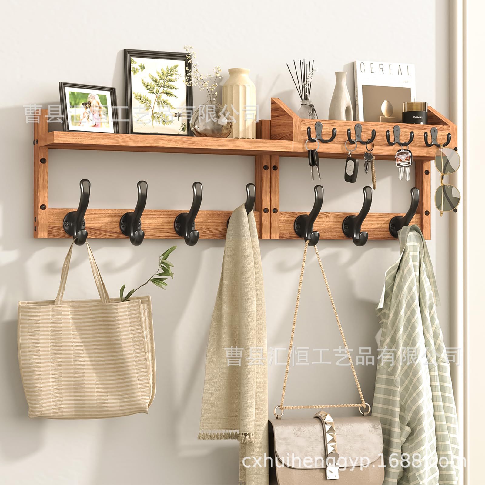 木製壁掛けラック、家庭用吊り下げ衣類、帽子、バッグ、鍵収納ラック、写真装飾品ベースラック