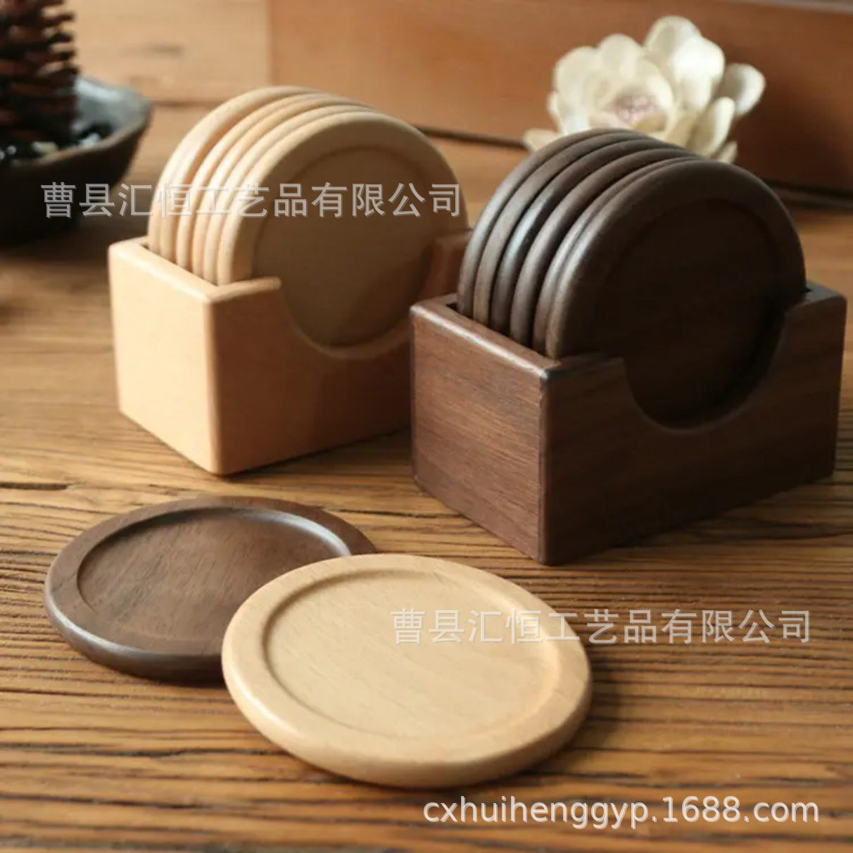 木製コースターデスクトップ家庭用断熱マットコーヒーコースターソーサー日本式断熱マット円形角型コースター卸売り