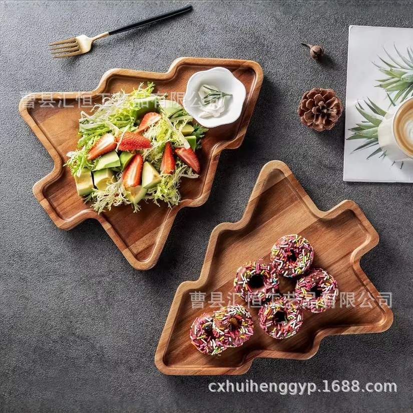 クロスボーダー木製クリスマスツリートレイ西洋ピザ木製トレイ家庭用アカシア木材スナックスナック装飾トレイ