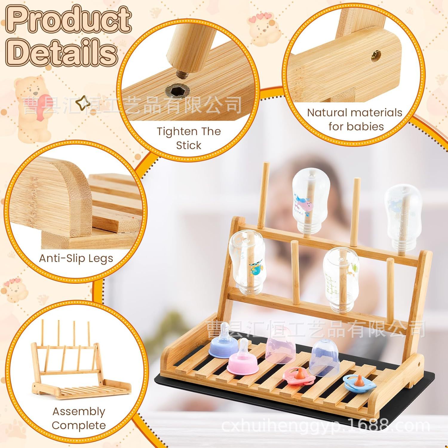 竹の木の哺乳瓶の棚は国境を越えて卸売りします。携帯式の折り畳みの哺乳瓶の棚の哺乳瓶のコントロール棚の竹製の水切りのコップの棚