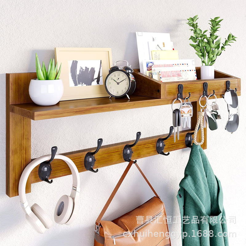 木製壁掛け棚長方形フックキーホルダー収納棚玄関封筒カード収納棚