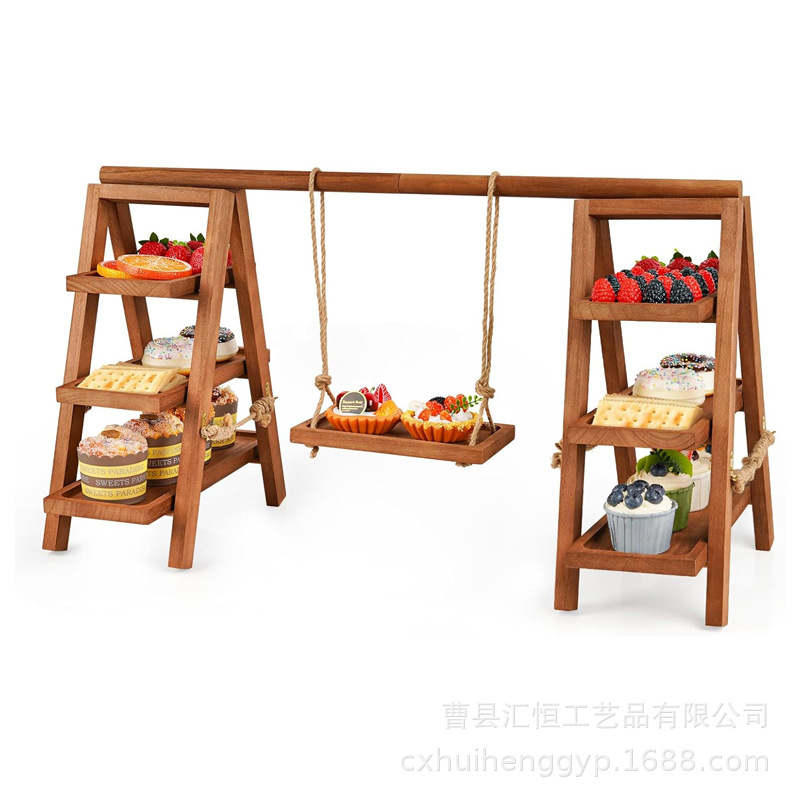 木製の紙コップのケーキの棚のテーブルの木製の紙コップのケーキの展示棚のテーブルの木製のパーティーのデザートの展示棚