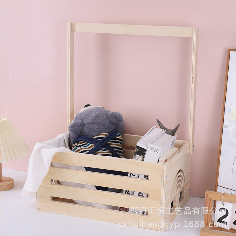 シンプルな木製ベビー用品収納ボックス家庭用ベビー衣類玩具収納バスケットハンドル付き収納物実木箱