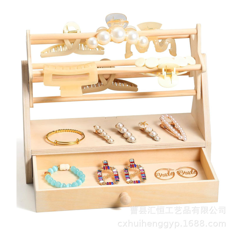 木制レディースヘアクリップ収纳ラック回転可能アクセサリー収纳ラック木制ネックレスストレージラックヘアクリップ展示ラック