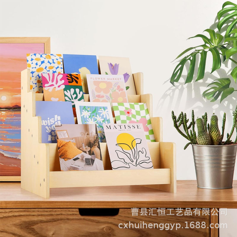 木製グリーティングカード整理展示ラック4層ステッカー収納棚ポストカード/写真展示ラック木製カウンターラック