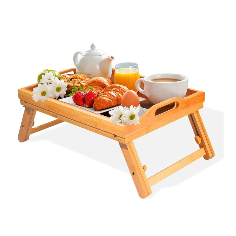折り畳み可能な竹の木のトレーの携帯型の木製の食卓のトレーの窓のベッドの上の多機能のトレーのテーブル