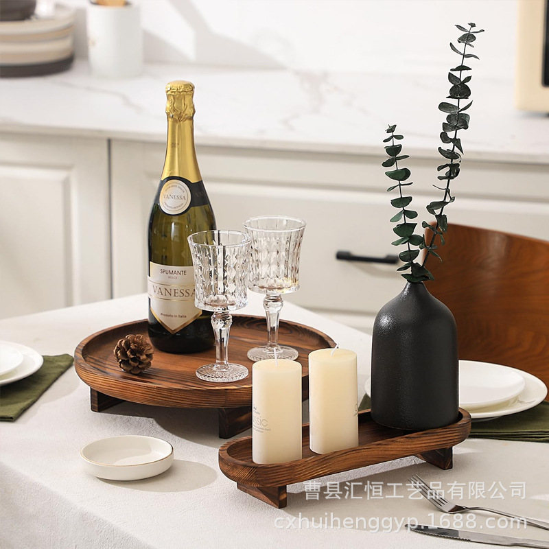 ラウンド木製テーブル置物パーティーパーティー装飾トレイ2ピース木製クリスマス収納トレイバスルームトレイ