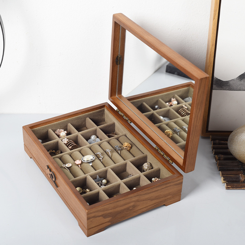 クリエイティブレトロ木製ジュエリーボックス鏡付きアクセサリーボックス化粧収納ボックスジュエリーボックスリングボックスジュエリーボックス