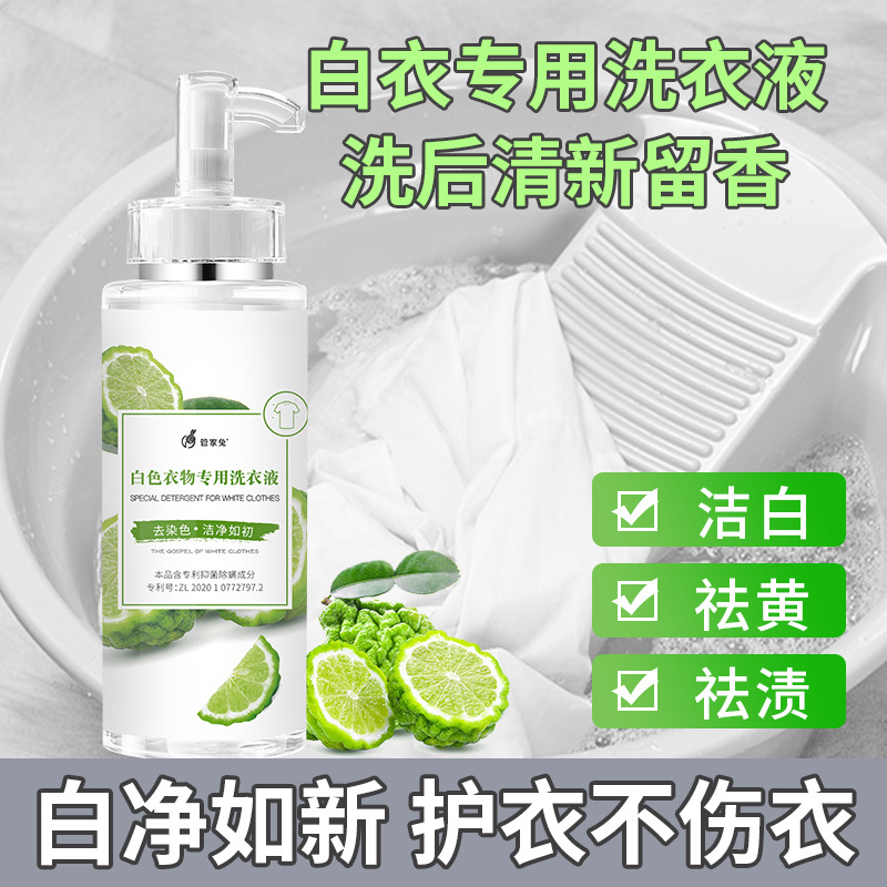 白い衣類専用洗濯液300mlは黄色に行って汚れを落とします。