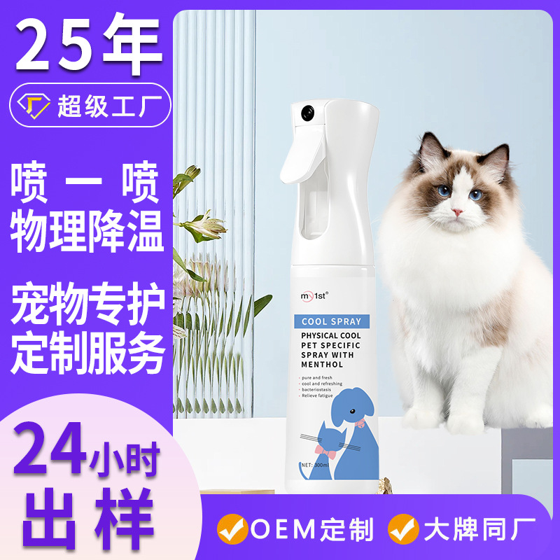 カスタムメイドの越境ペット用冷却スプレー、猫と犬の暑さ対策、物理的冷却、氷のような感触のスプレー、消臭スプレー、OEM