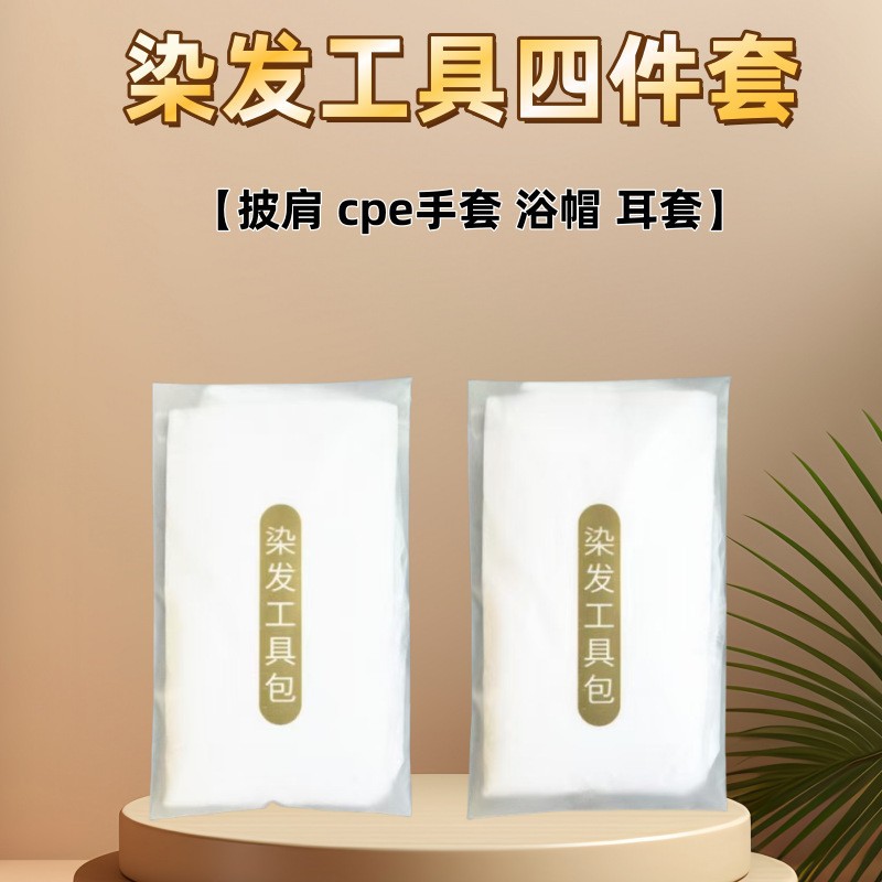 使い捨て染毛キット4点セットストールマフラー口耳カバーシャワーキャップ手袋美髪セットツール