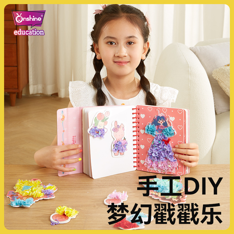 子供の頃の無限の夢の手描きの王女のスタンプの音楽の着せ替えの本の貼る本の女の子は子供の手作りのおもちゃを貼り付けます。