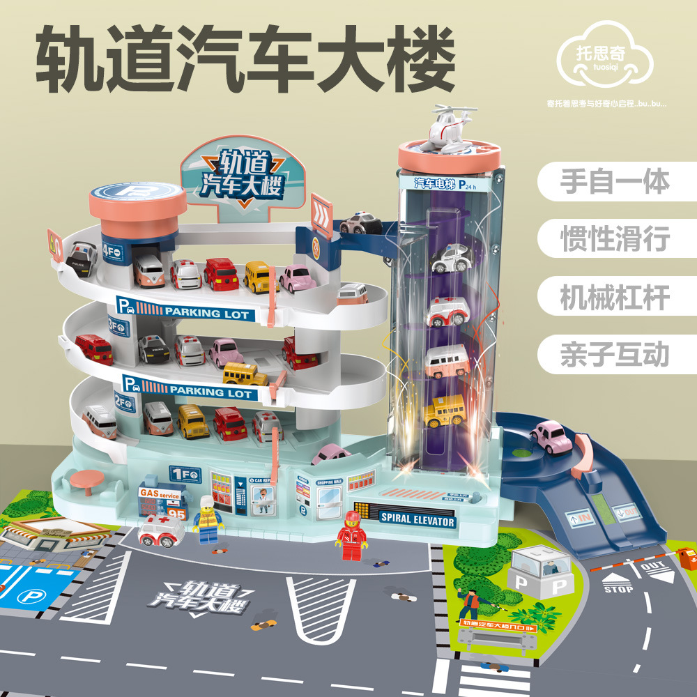軌道車玩具小型自動車電気男の子自動車レースリフト駐車場セット大型駐車ビル