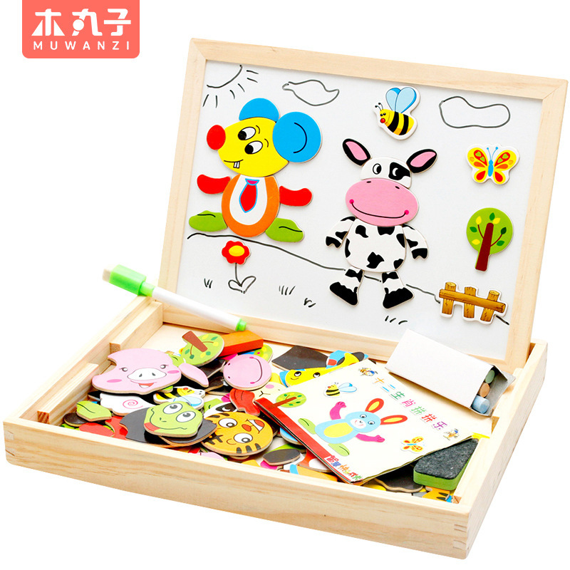 木団子の木のパズルの両面の益智は画板の木製の多機能の動物の磁気のつづり合わせのおもちゃを学びます。