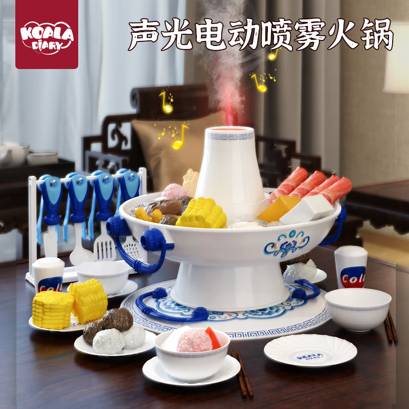 コアラ日記子供のままごとの台所のおもちゃはおもちゃのスプレーの鍋をスプレーして炉の蒸気の男の女の子を打ちます。