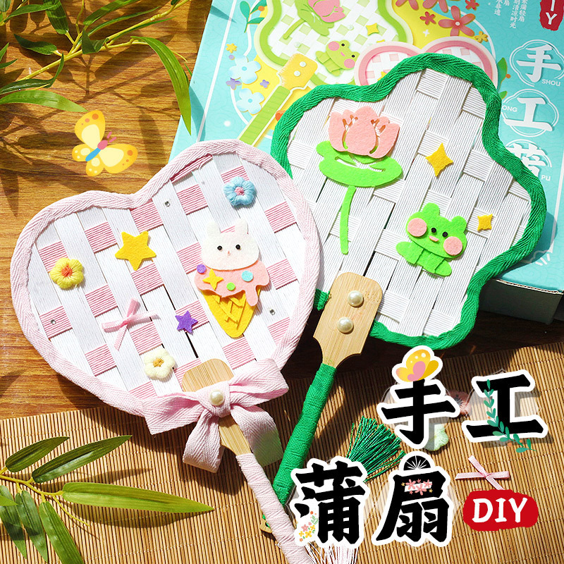 おもちゃの先生手作り非遺品竹編み扇子diy材料包古風団蒲扇子供夏親子活動