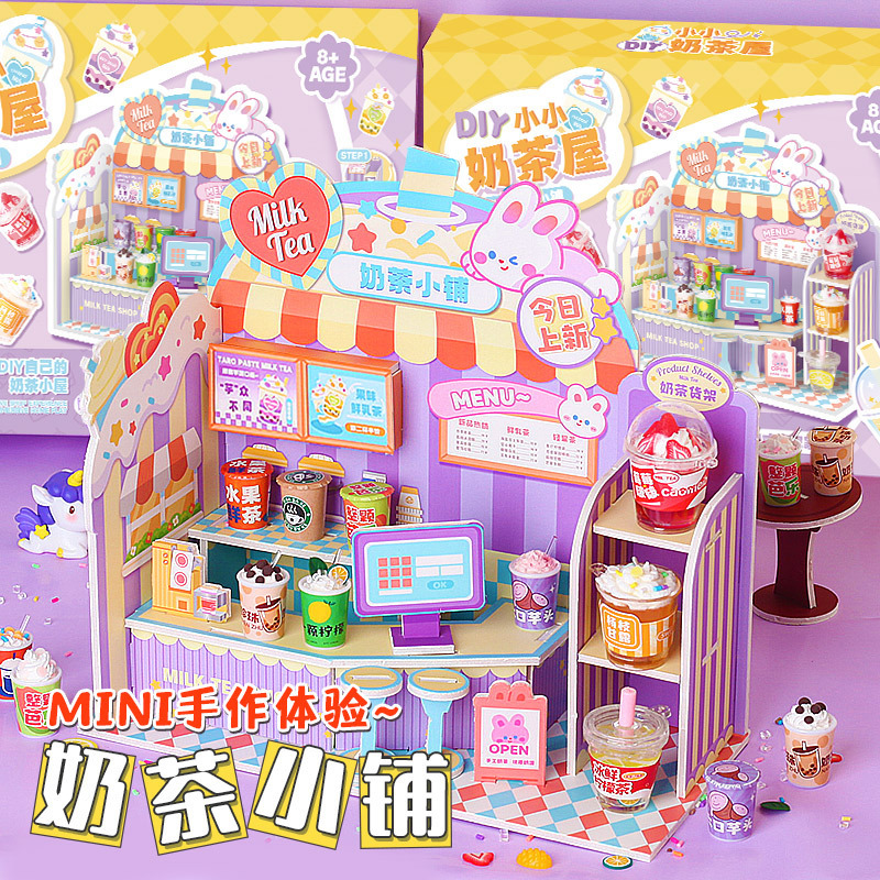 おもちゃの先生DIYミニミルクティーハウス手作り材料バッグセット食游小店クリエイティブクリーム女の子