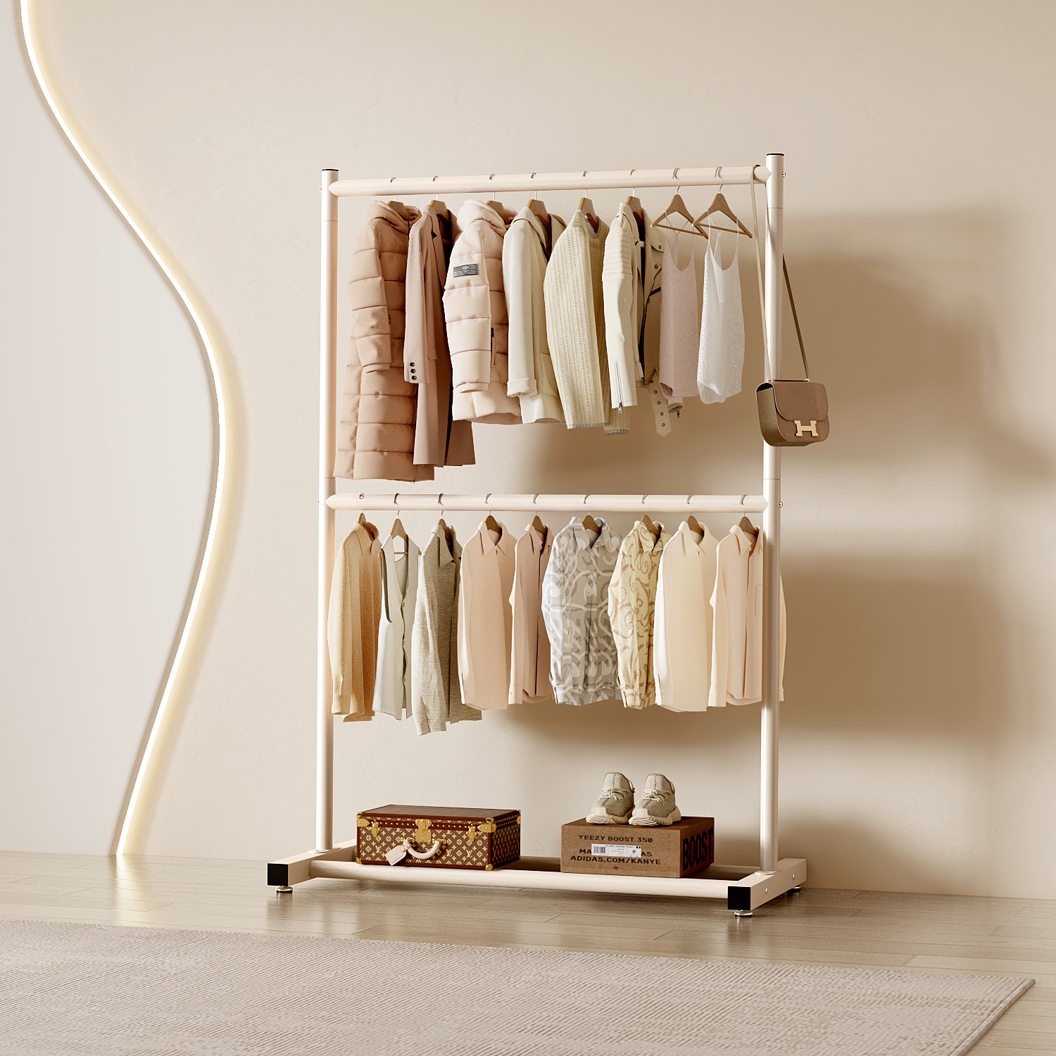 衣類ラック床置き寝室クリームスタイルモバイル二層リフティングコートラックリビングルーム一時的な衣類収納衣類ラック