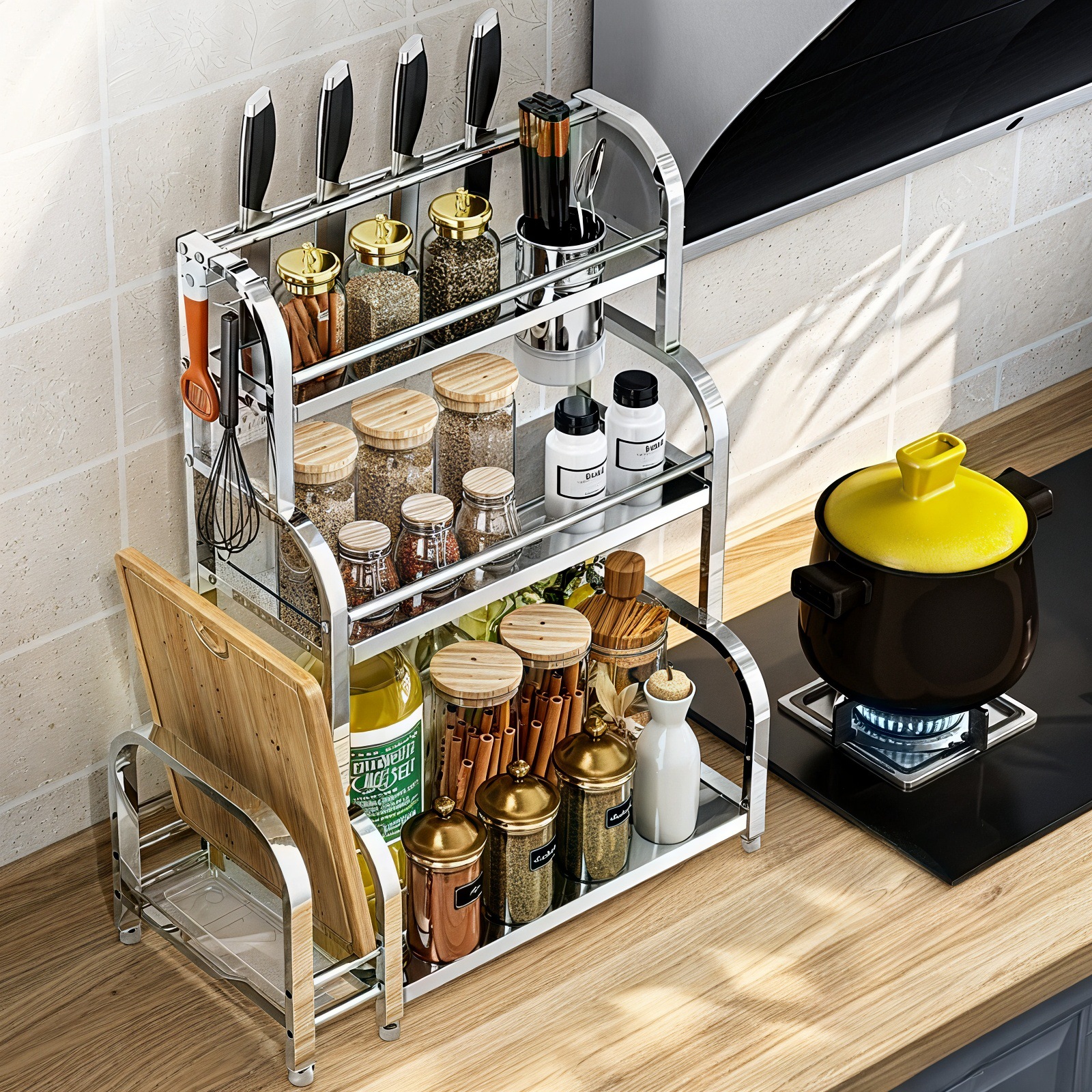 ステンレス鋼のキッチン調味料収納ラック多機能箸とナイフホルダー家庭用塩調味料瓶収納ボックス調味料ラック
