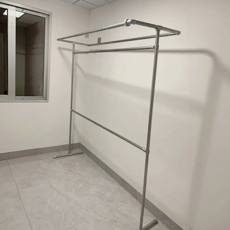 亜鉛メッキ厚鋼管衣類乾燥ラック床置き垂直屋内新しい寝室バルコニーシンプルなカーテン二層衣類ラック