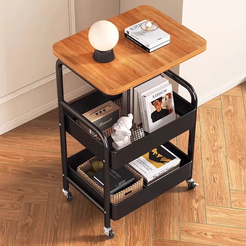 可動二層コーヒーテーブルトロリーサイドテーブルリビングルームソファ収納車輪付きティーテーブル寝室収納ラック小さなテーブル