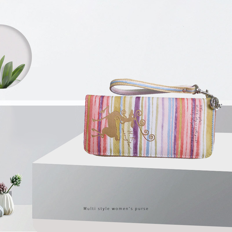 外国貿易新しい韓国スタイルの女性用ハンドウォレット pu レインボーストライプパーソナライズプリント携帯電話バッグジッパー財布レディースバッグ