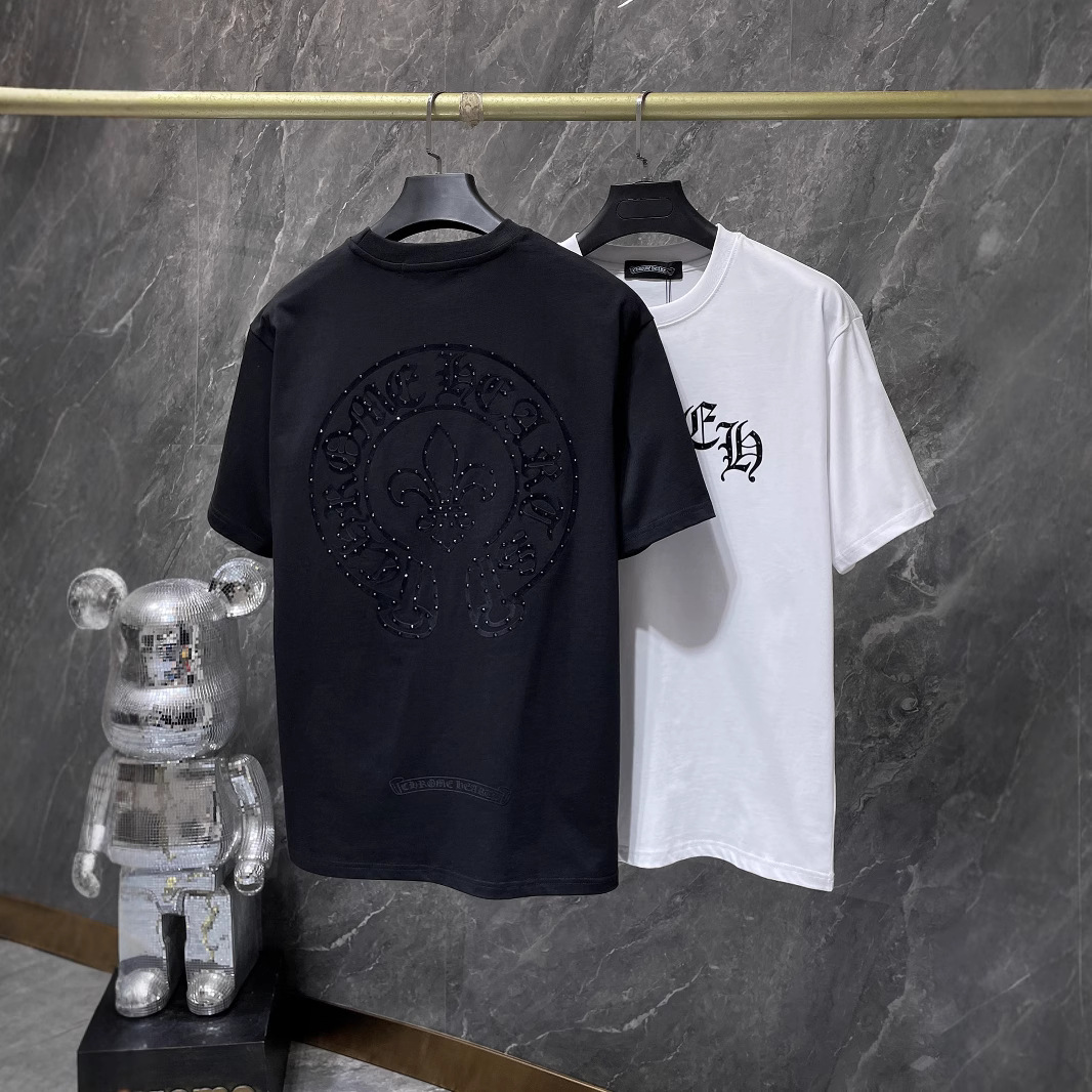 25 新作 クロムハーツ 25ss ホットダイヤモンドクロス 馬蹄半袖Tシャツ 男女兼用 カップルスタイル