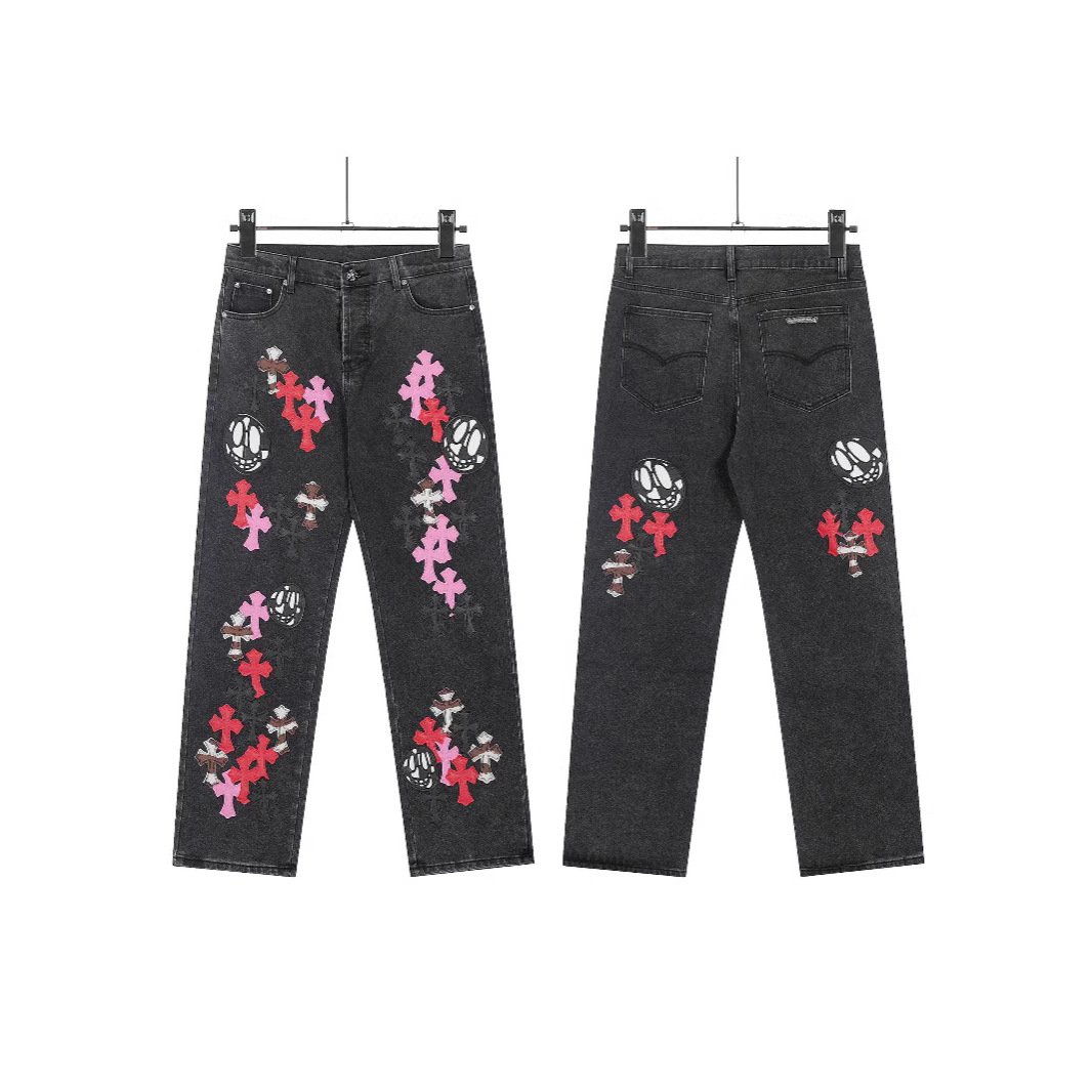 24s 秋冬新作 Chrome Hearts 迷彩クロスレザーカップルウォッシュジーンズ