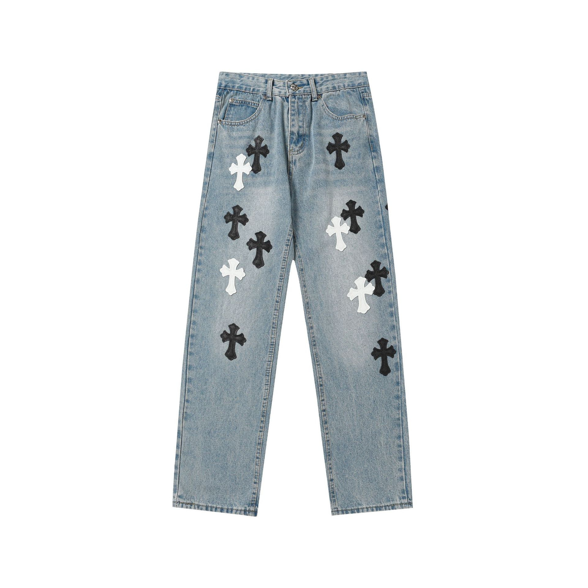 24 正しいバージョン CH クロウクロスレザーラベルウォッシュジーンズカップルストリートルーズ春と秋のストレートパンツ