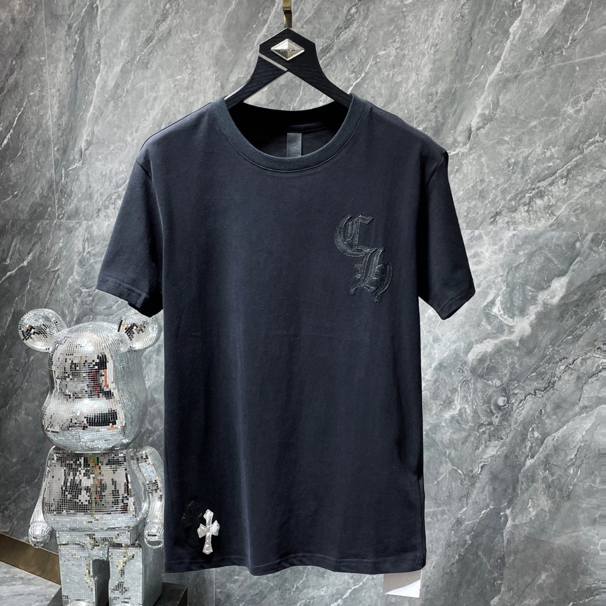 高バージョン Chrome Heart 24 新しいクロムハーツ夏馬蹄サンスクリットラウンドネックメンズとレディース Tシャツ半袖