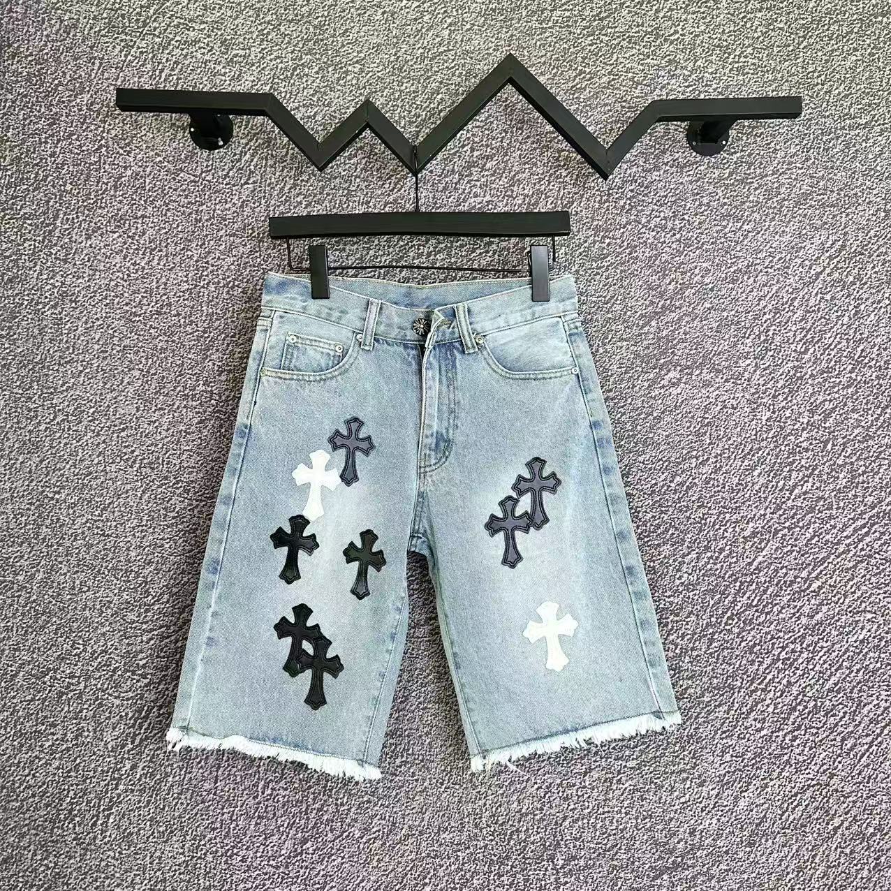 2025 新 CH クロウクロス刺繍クォーターパンツカップル夏ルーズローエッジデニムショートパンツ