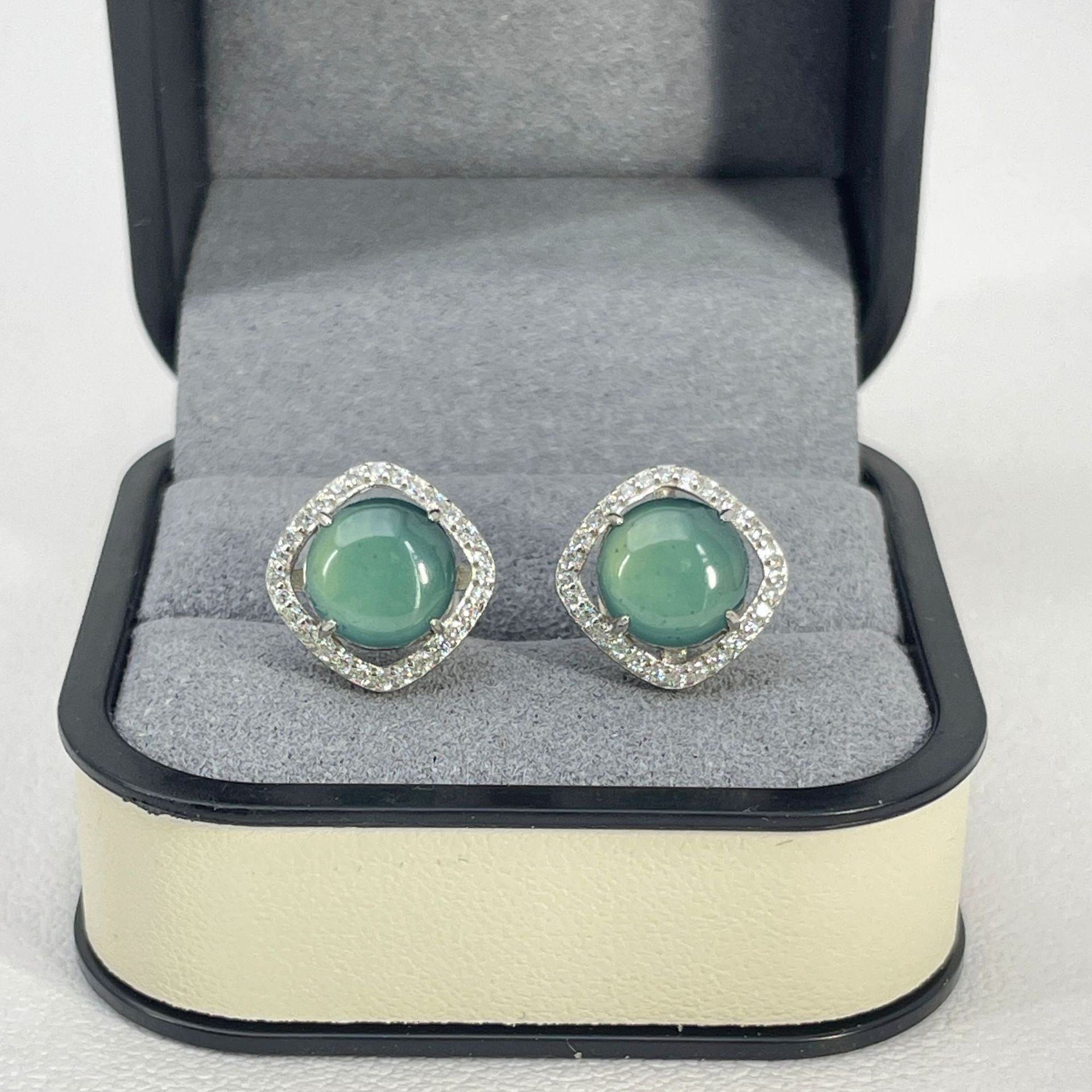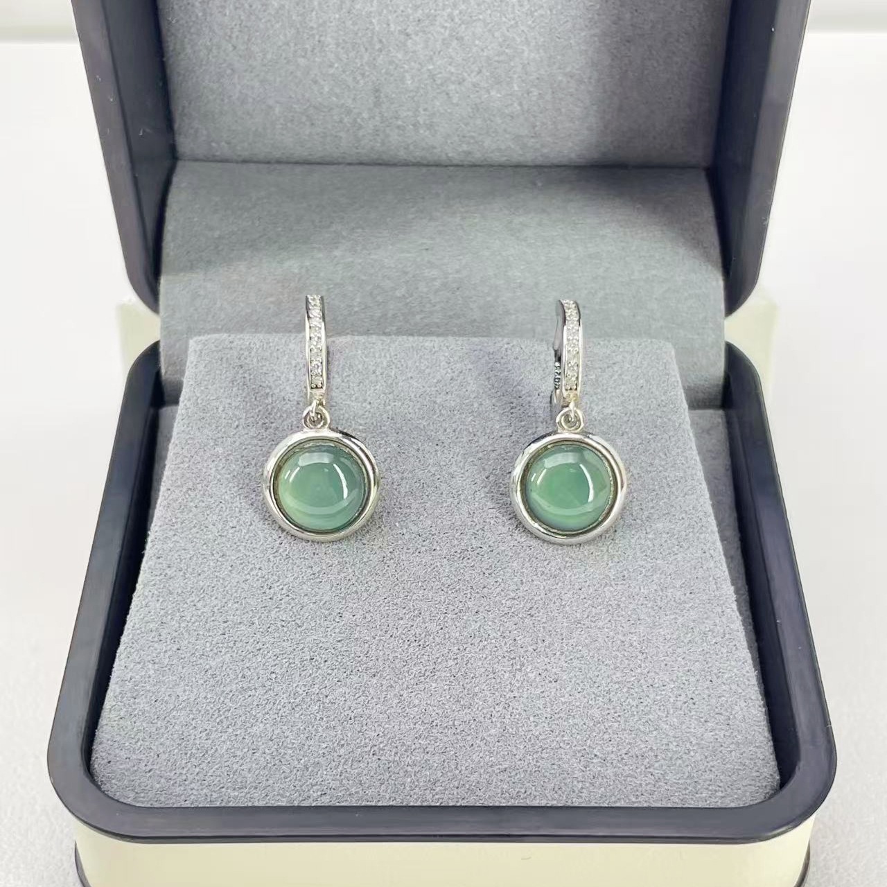 ブルーウォーター卵表面翡翠イヤリング S925 シルバーファッション多用途気質ライト高級 8 ミリメートルクラシックイヤリング ML-025 アイスタイプ