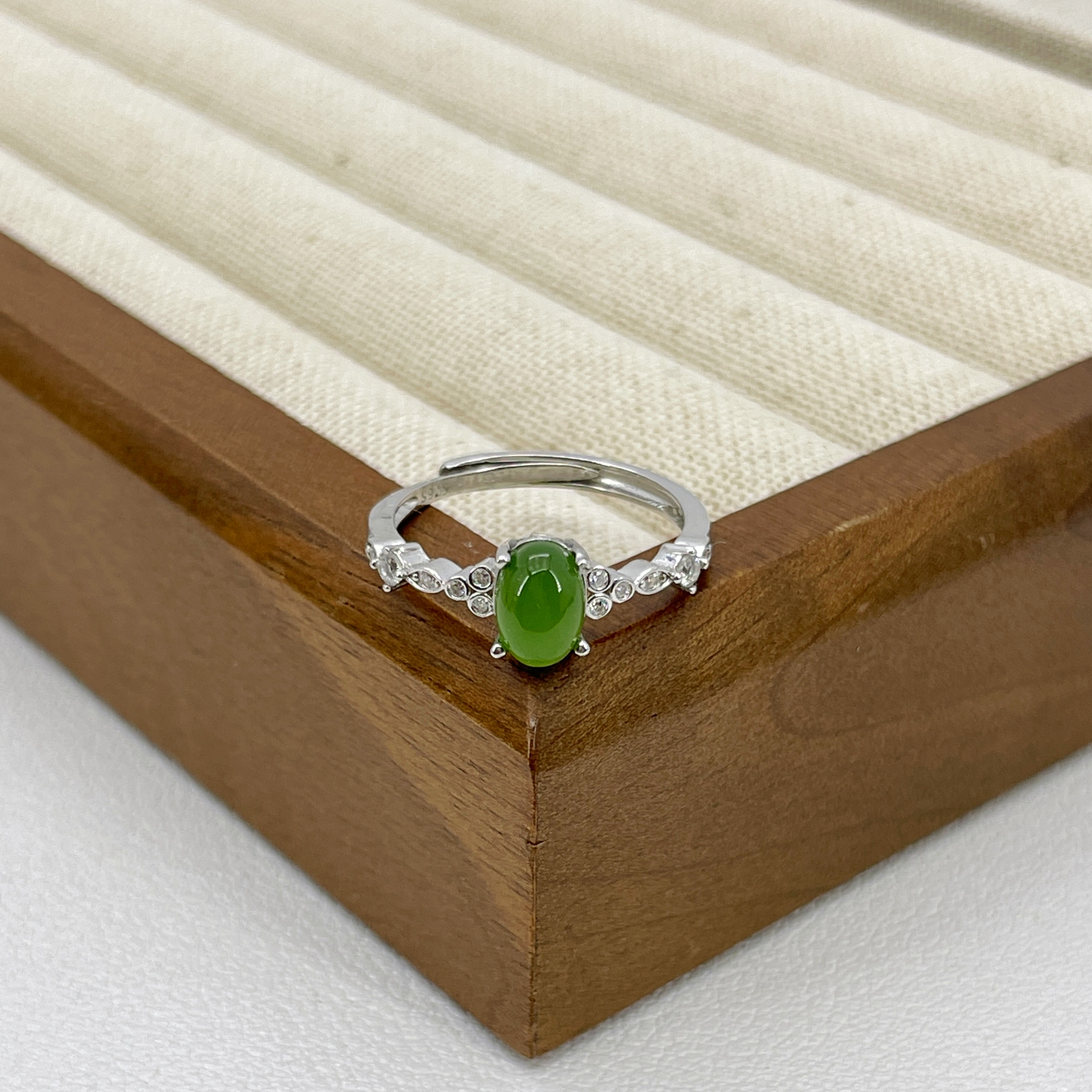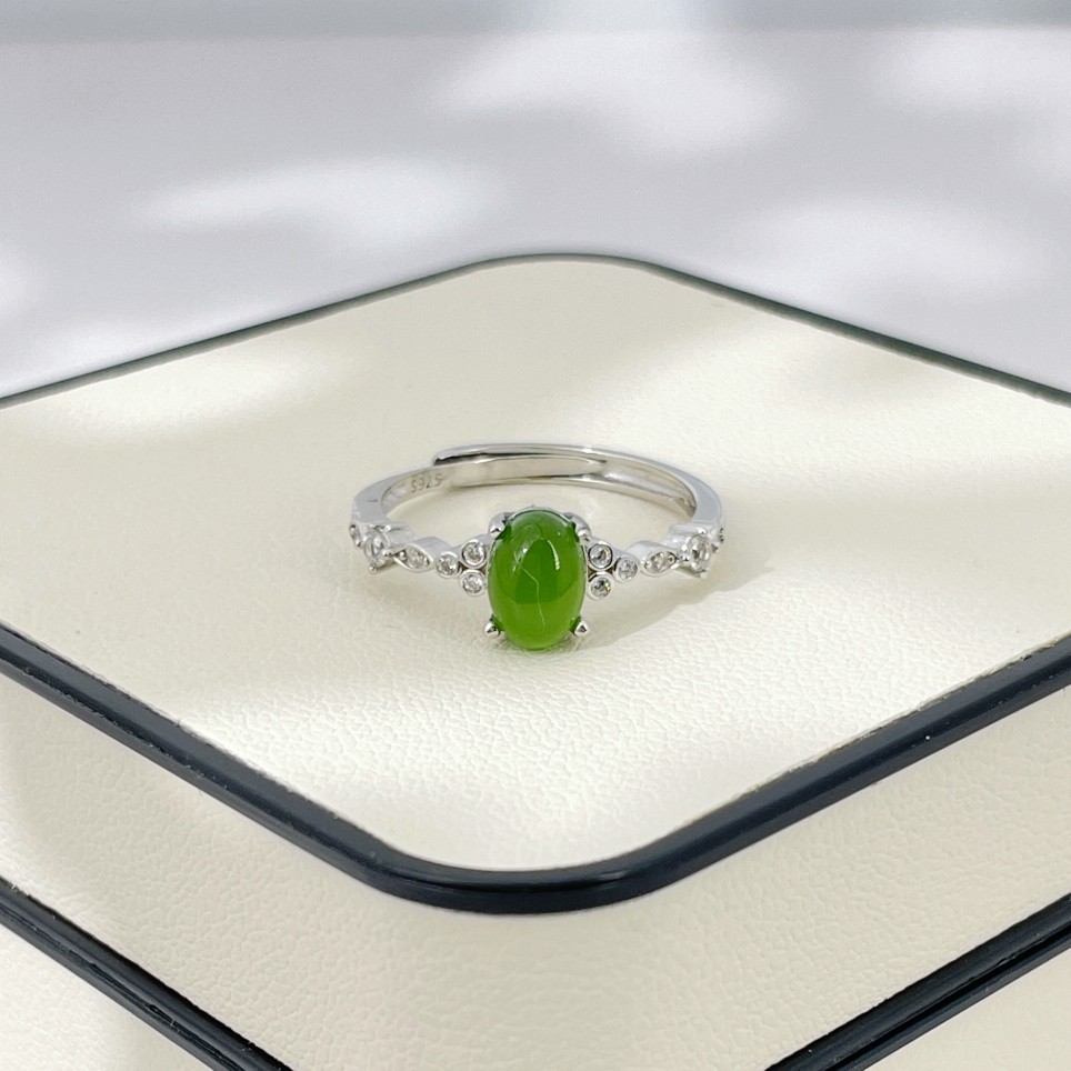 Hetian Jade Jasper リング S925 シルバーファッショナブルで多用途なハイエンドの気質エレガントな女性ニッチジュエリーシルバーリング 2A52