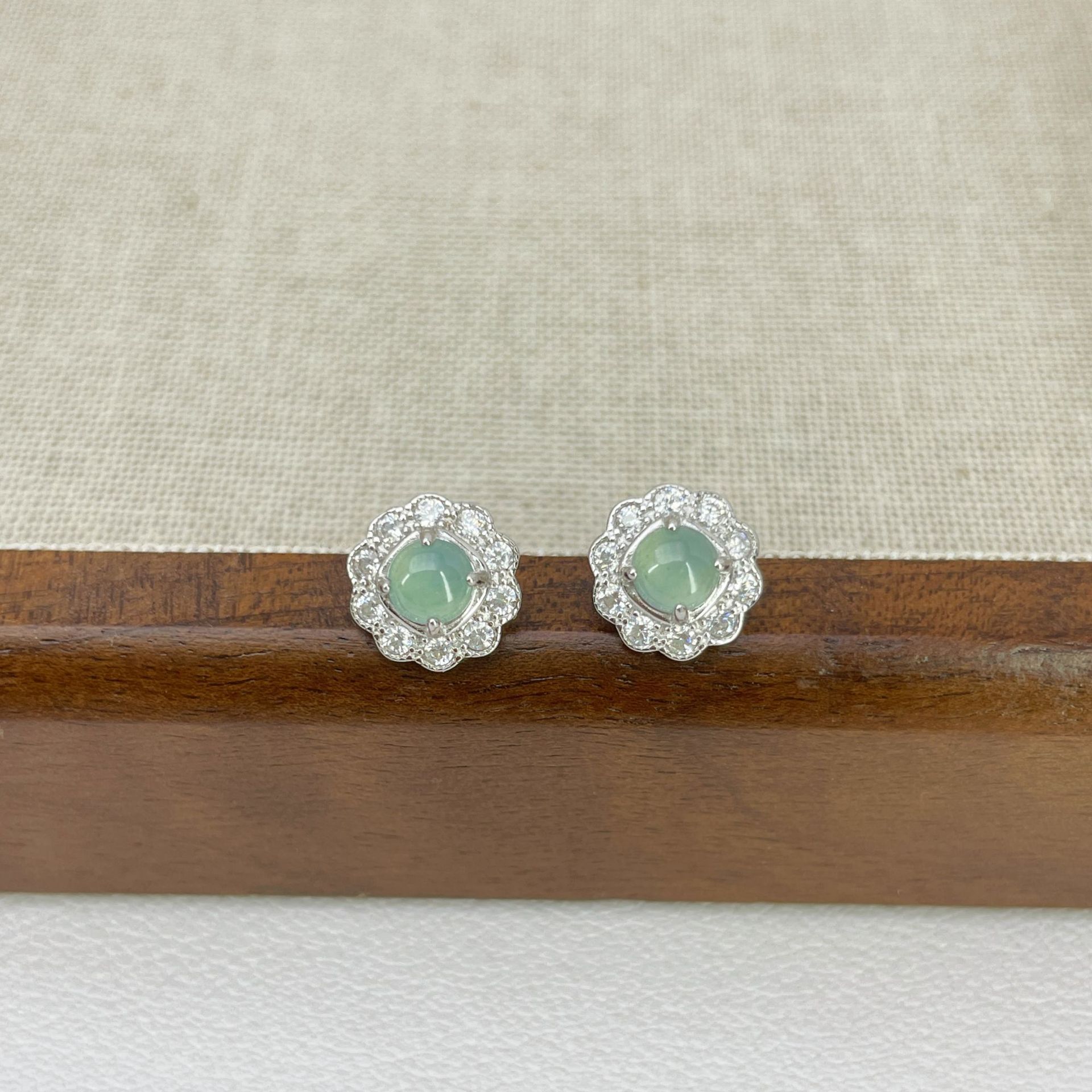 A品翡翠ピアスs 925銀8mm品質藍水ファッション百合透かしデザイン小衆ジュエリーイヤリングml 13