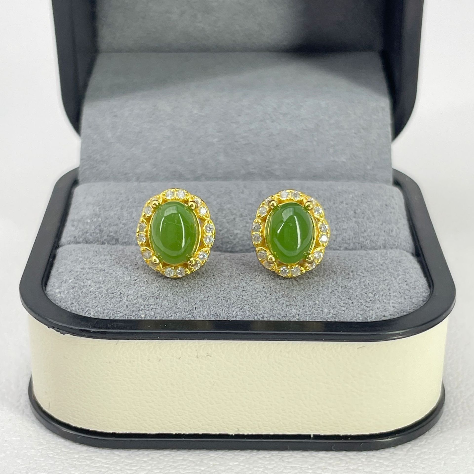 和田玉碧玉イヤリング S925シルバー エレガントで汎用性の高いシンプルなゴールドカラー 5*7mm イヤリング C-4252025 新作