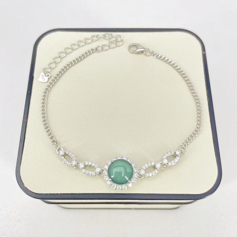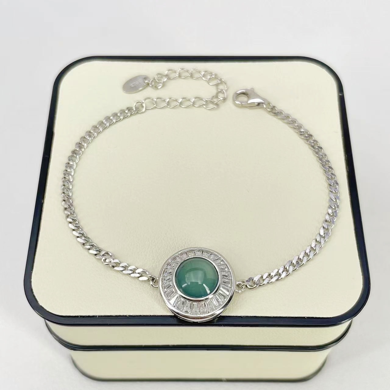 A品藍水卵面翡翠ブレスレットS925銀氷透ファッション百合個性気質軽豪華8mmチェーンW-304