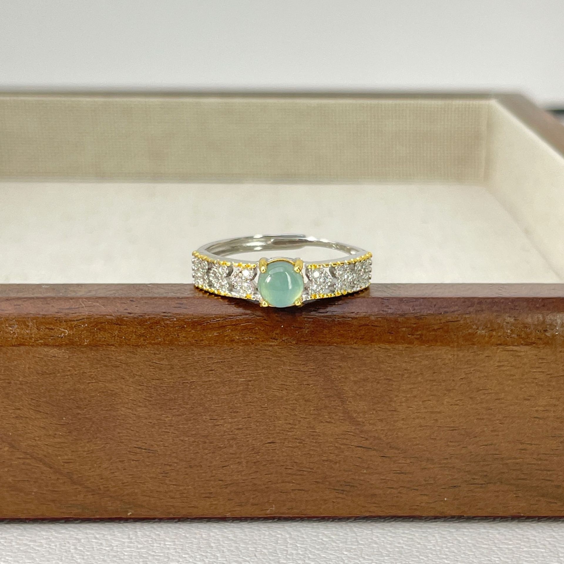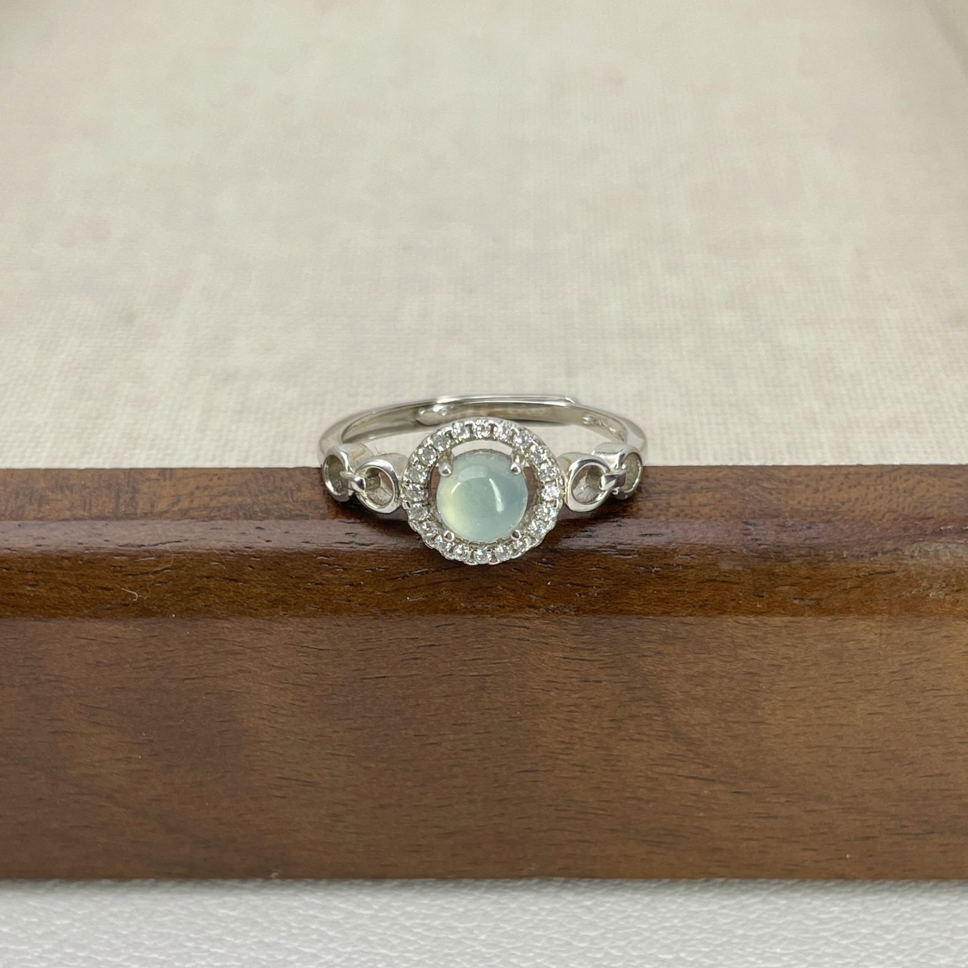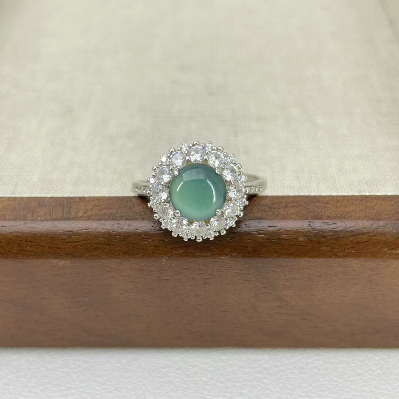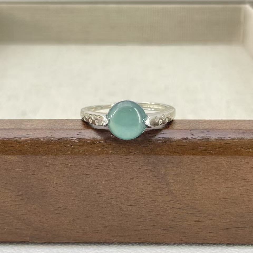 A品翡翠藍水卵面指輪S925純銀托小衆婦人指輪シンプルアクセサリー卸売り高級感