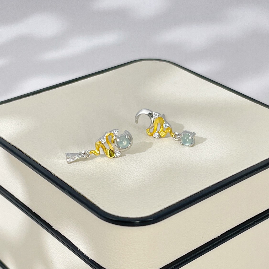 A グレードの翡翠イヤリング S925 シルバーファッショナブルで多用途な日月と星のデザイン AB スタイル 3 ミリメートルブルーウォーターニッチジュエリー 15D8