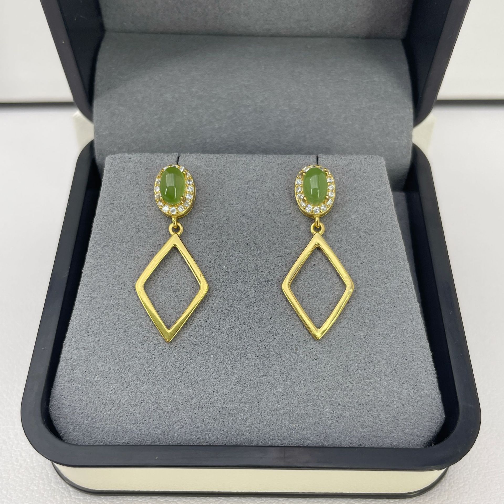 天然ホータン翡翠ジャスパーイヤリング S925 シルバー象嵌イヤリングファッショナブルで多用途な気質豪華でエレガントなイヤリング W-487