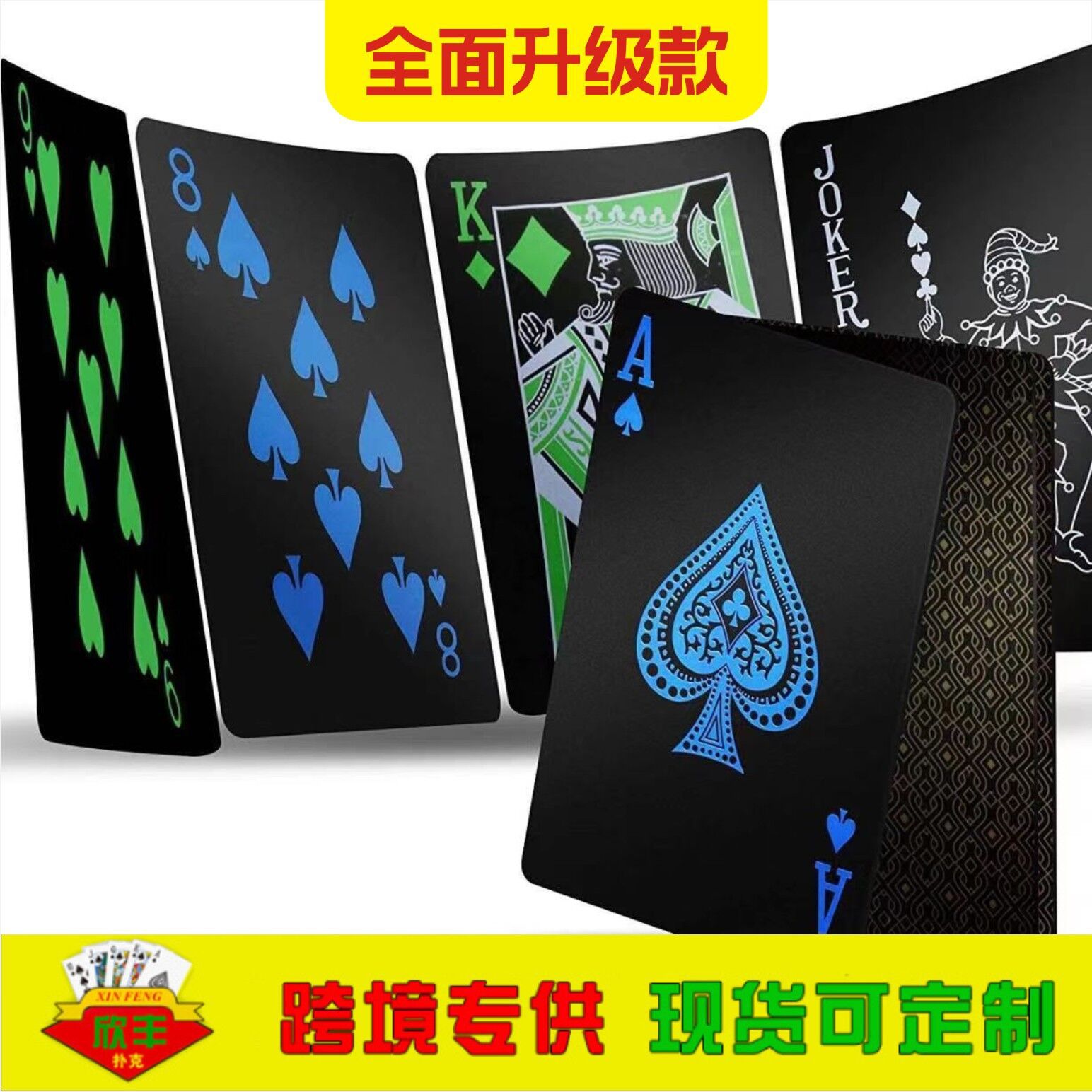 メーカー創意黒色pvcプラスチック防水トランプの現物テーブルゲームの広告トランプはロゴを印刷できます。
