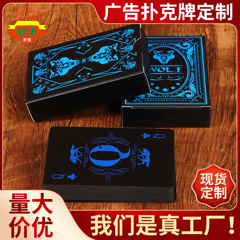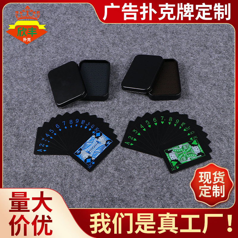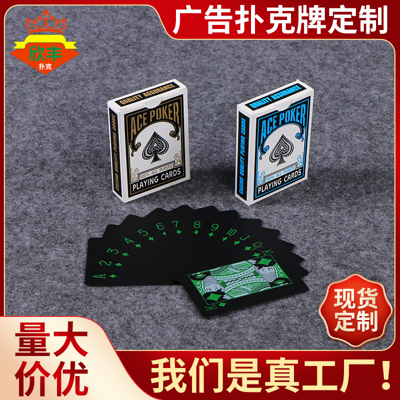 メーカー創意黒色pvcプラスチック防水トランプの現物テーブルゲームの広告トランプはロゴを印刷できます。