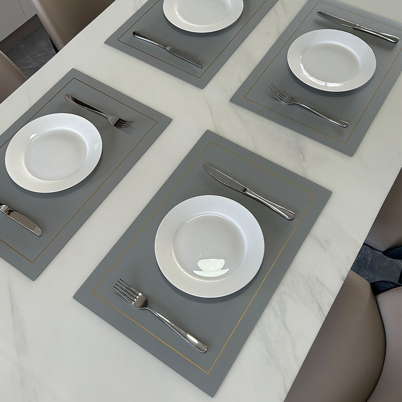 北欧風高級2色長方形洋食マットPVC革卓マット滑り止めテーブル高級感ボウル
