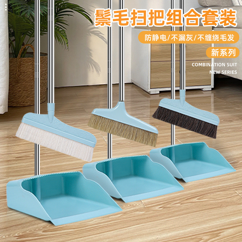 ほうきセットの柔らかい毛ほうきと箕の組み合わせで家庭用のたてがみが髪にくっつかない羊毛を掃くほうき