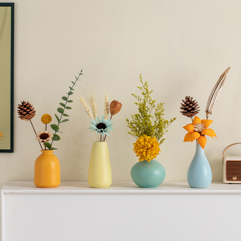 Ins風陶磁器の小さい花瓶の乾いた花の生け花の家庭の客間のテレビの棚の女子学生の部屋の装飾品のデスクトップの置物