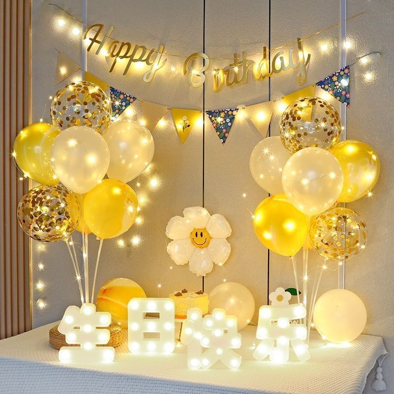 新作バースデーパーティーデコレーションセットバルーンフラッグハッピーバースデーライトアップ雰囲気シーンアレンジ写真撮影インスタ