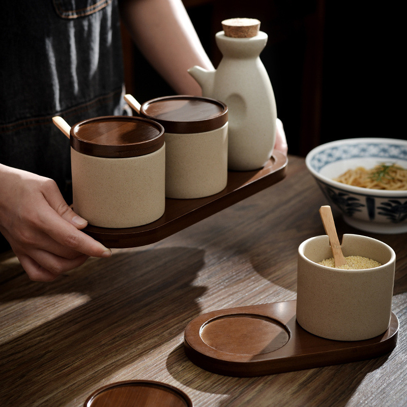 粗陶調味料缶日本式調味料セット陶磁器家庭用キッチン調味料箱塩糖鶏エキス唐辛子油